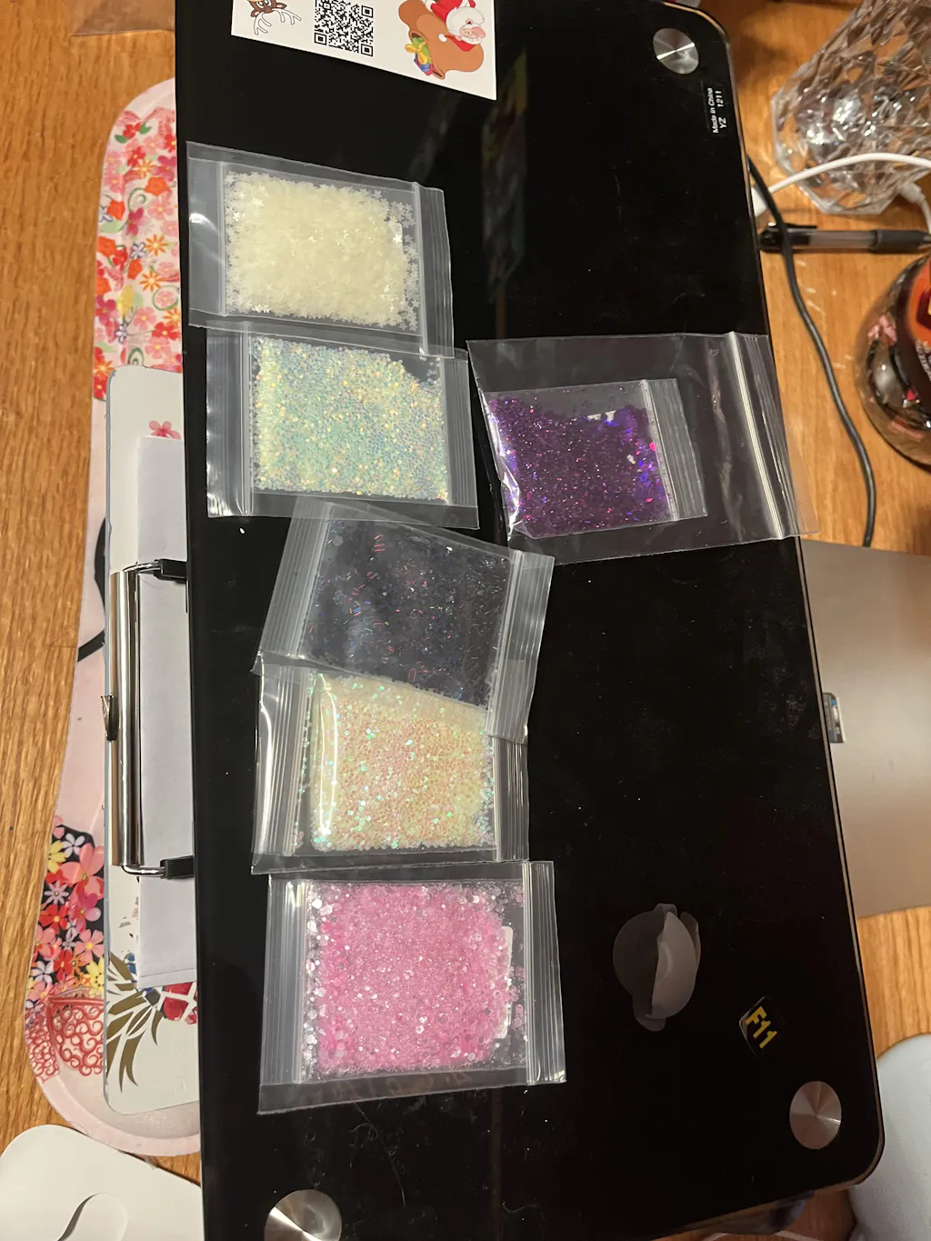Glowing Fairy Glitter. Glow in the dark. This is an iridescent white glitter with shifts of green and pink. 5 Gram Bag. A (.040) glitter size. The more light it's exposed to the more it will glow in the dark. Great for arts & crafts, resin, badge reels, shaker charms, nails, . See what a 5 gram bag looks like: click here
