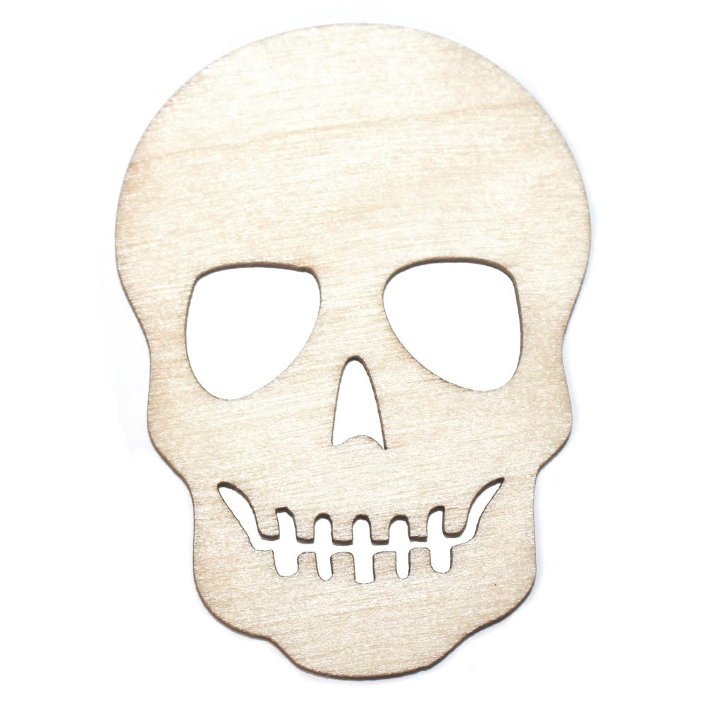 Halloween Skull Skeleton wood shape blanks to paint on for arts & crafts, Halloween wreaths, diy projects, etc.  These are custom laser cut wood shapes. Dimensions are 1-13/16" Wide x 2-1/2" Tall.