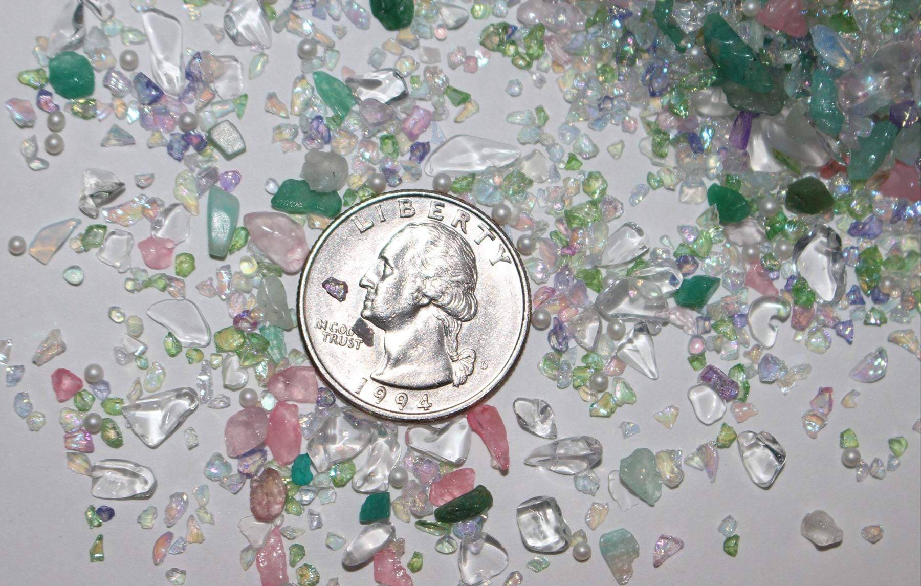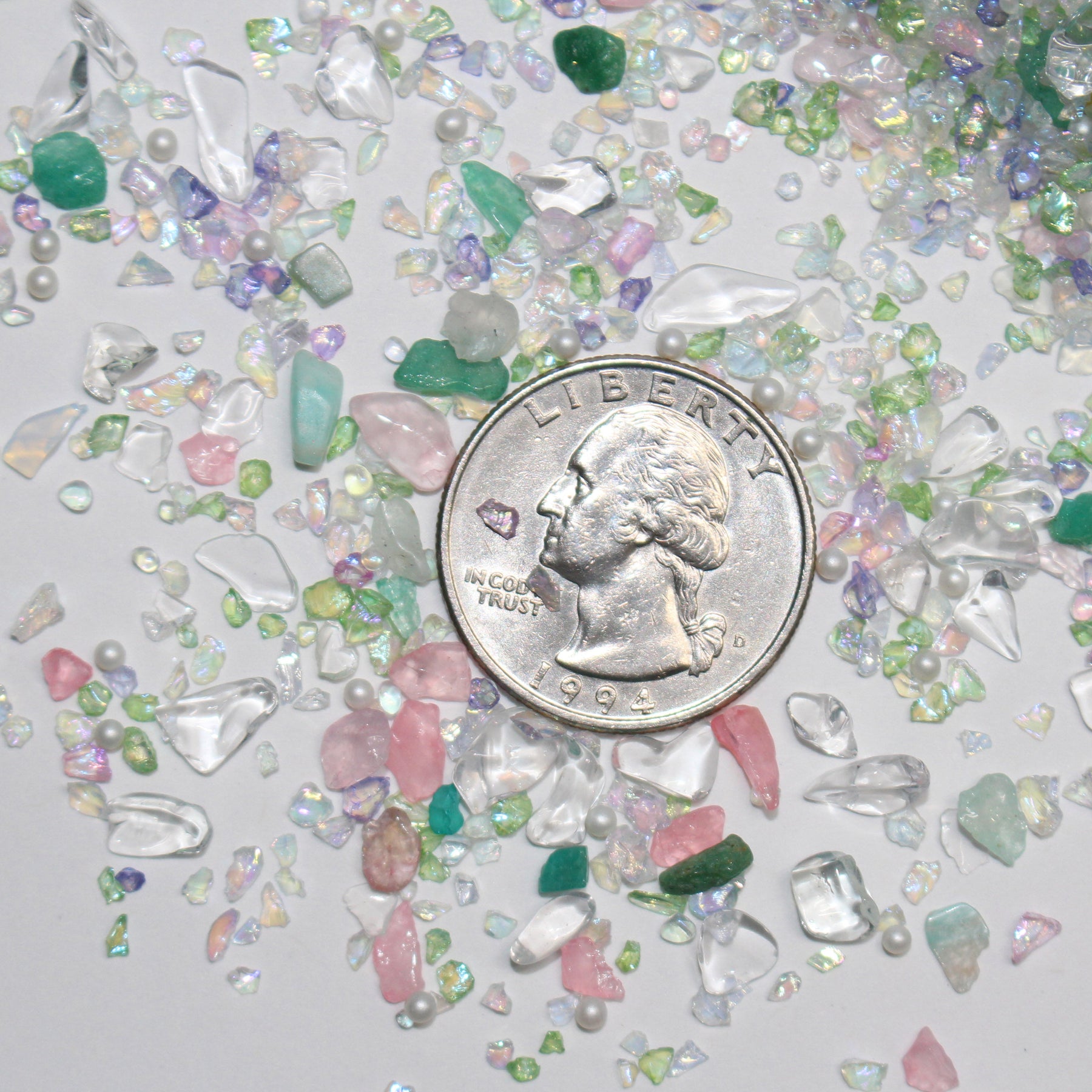 β¨ Iridescent icy tones that catch the light just right. And just a few scattered tiny white pearls.