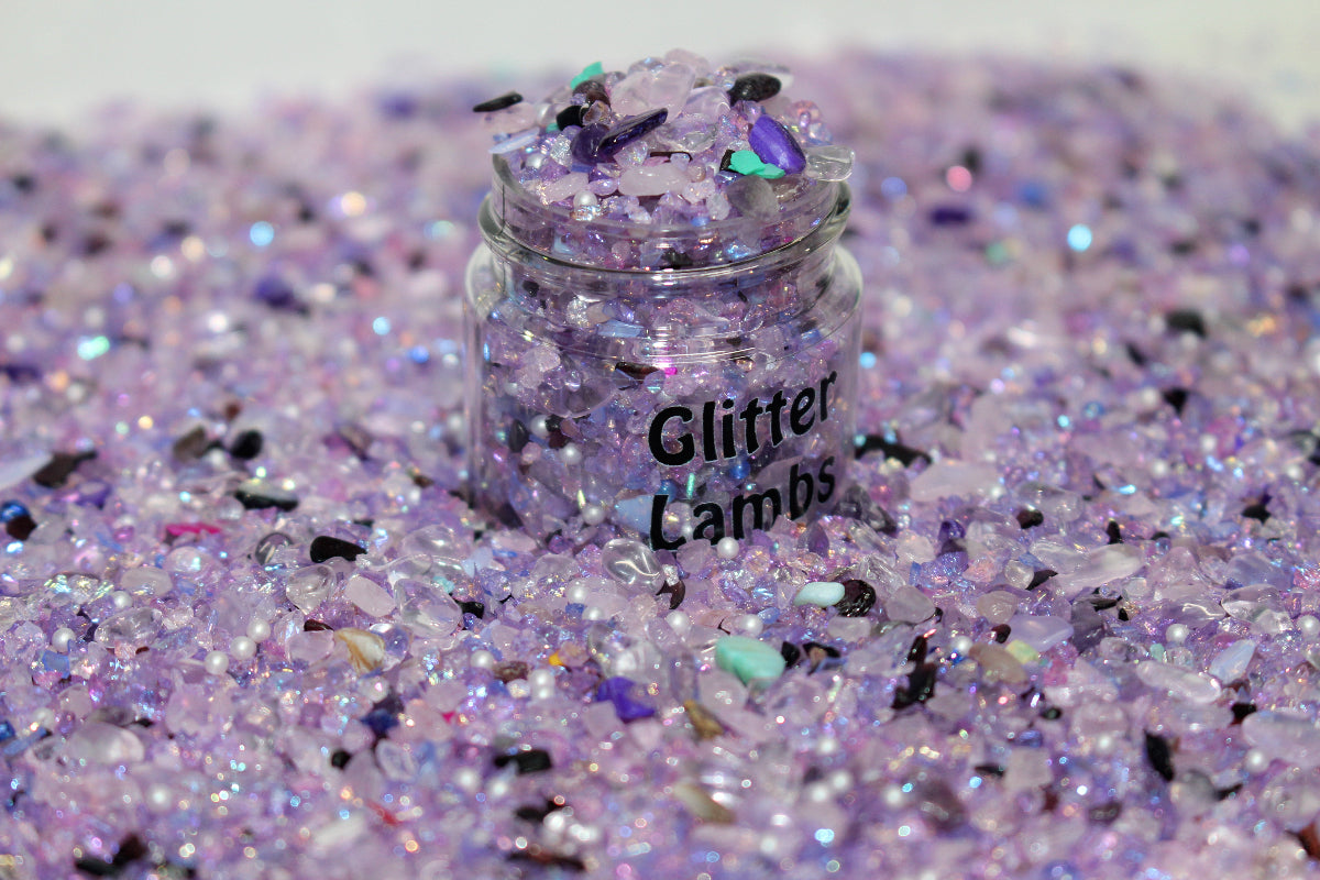 Creepy, chilling, and perfectly unsettling โ this mix takes its name from the eerie new horror movie Weapons, where things arenโt always what they seem. Inspired by the haunting vibe of kids gone missing and shadows that whisper, this blend is filled with tiny smooth stones in shades of purple, aqua, deep black, and dark violet.