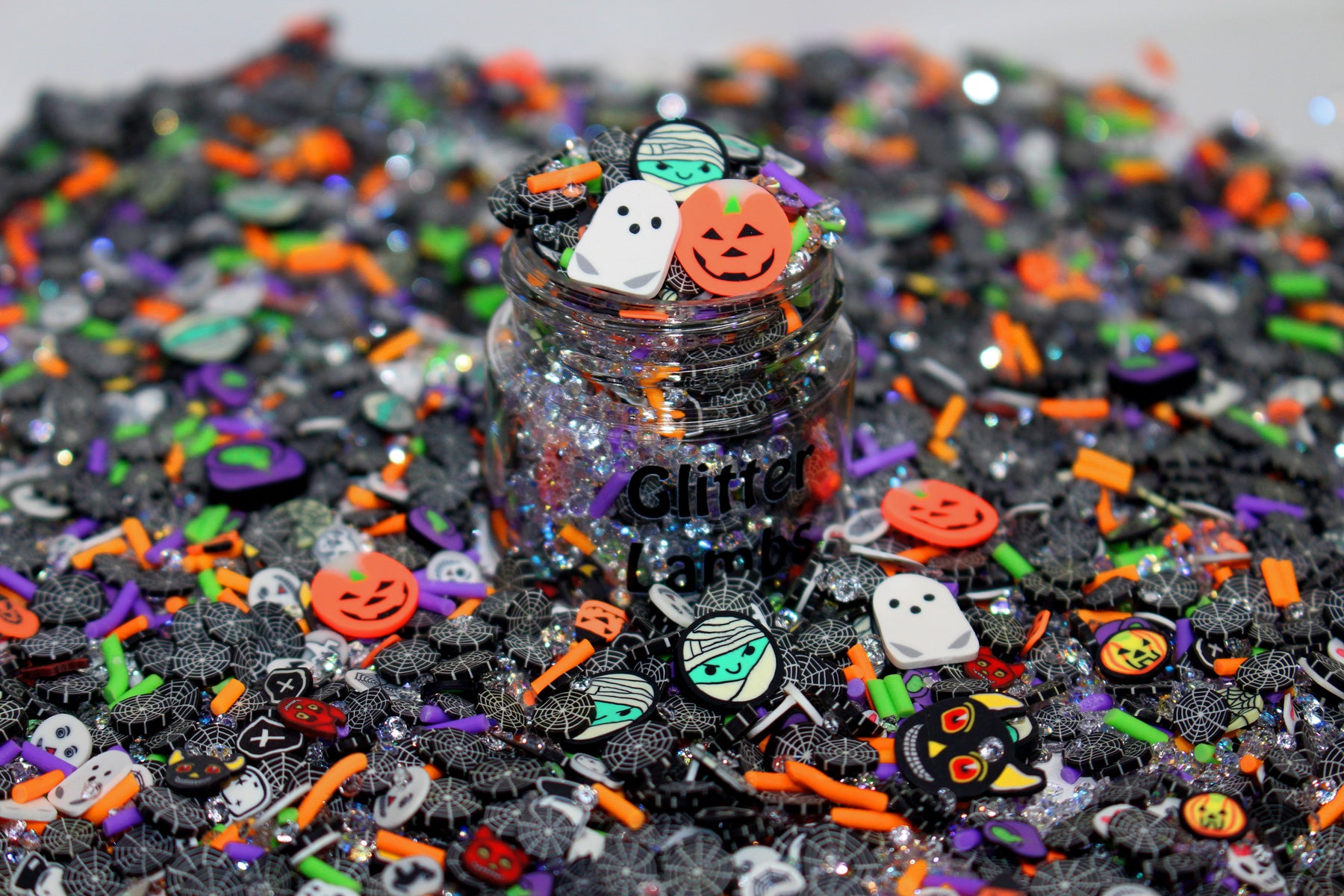 Inside you’ll find bright oranges, ghostly whites, witchy purples, creepy greens, and more — plus playful Halloween icons like pumpkins, ghosts, spiderwebs, and mummies. It’s a colorful cauldron of sparkle that feels like opening a bag of Halloween candy straight from the cartoon!